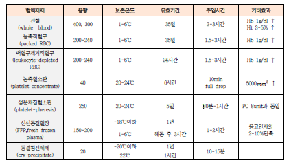 (고체온 등의 상황으로 수혈 못하면 다시 혈액은행에 보내야 함)