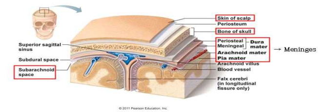 1. Skull layers Meninges(뇌막): dura mater(경막), arachnoid mater(거미막), pia mater(연막)